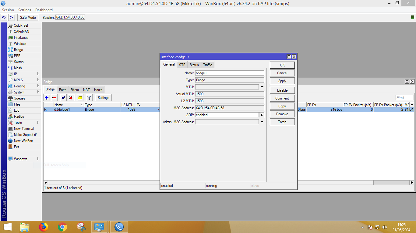 6. Klik Bridge, Pada Tab Bridge Klik Add "+", Klik Apply Lalu Ok